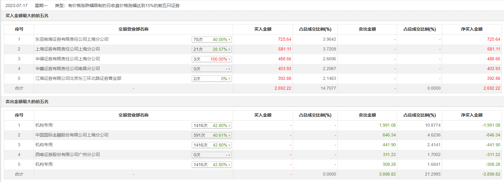 7月17日,金橙子今日涨停,龙虎榜数据显示,上榜营业部席位全天成交6591.04万元,占当日总成交金额比例为36.01%。其中,买入金额为2692.22万元,卖出金额为3898.82万元,合计净卖出1206.59万元。