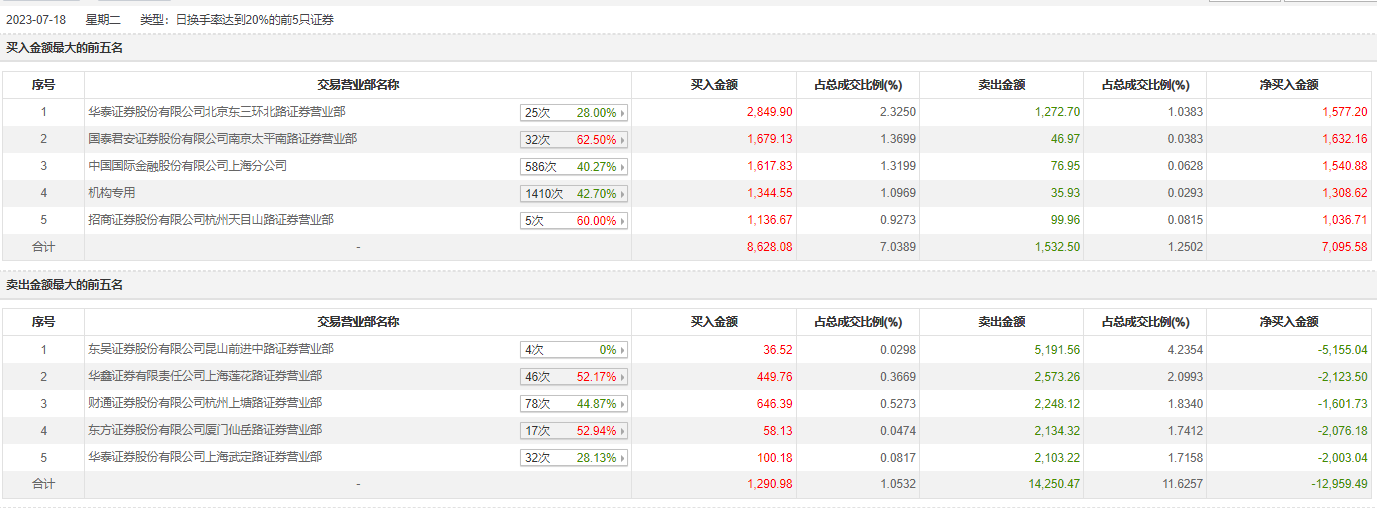 具体来看,机构买入1344.55万元,卖出35.93万元,合计净买入1308.62万元。此外,知名游资现身龙虎榜,华泰证券北京东三环北路证券营业部、作手新一(国泰君安证券南京太平南路证券营业部)分别买入2849.90万元、1679.13万元;东吴证券昆山前进中路证券营业部、华鑫证券上海莲花路证券营业部分别卖出5191.56万元、2573.26万元。