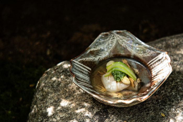 主厨在继承传统的基础上兼顾现代性的平衡,善于通过出汁演绎山野菜的时令季节感,对日本民俗有很强的表现力。植庭此次以一席充盈着初夏旬味的水无月御献立菜单,以野菜作为料理主角之一,拉开了餐厅焕新归来后的序幕。