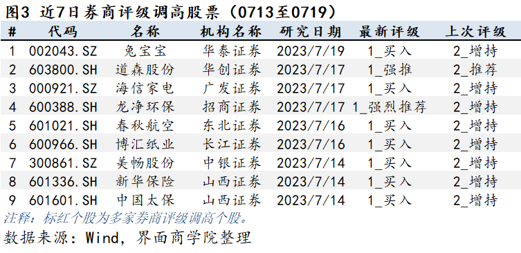 数据显示,近7日有9篇研报对9家A股公司评级进行上调。