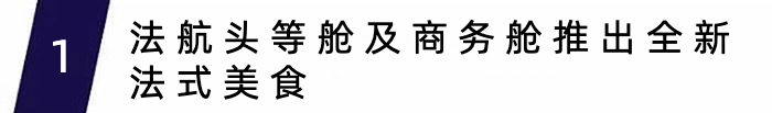 2023年7月13日,法国航空宣布,从7月到10月,将推出一系列全新法式美食。商务舱菜单由米其林二星主厨蒂埃里·马克斯设计,灵感来自于法国美食传统。头等舱菜单由著名的米其林三星大厨雷吉斯·马孔设计,甜品则交给法国最佳手工匠甜品师菲利普·乌拉卡负责。作为唯一一家与如此多米其林星级厨师合作的航空公司,法航共计将在2023年内与17位名厨合作,共同推广法兰西美食。