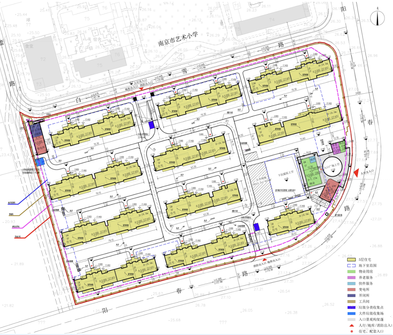 该项目位于栖霞区西岗街道,白雪路以南、阳春路以西。地块北侧为南京市艺术小学,东侧、南侧为龙王山。总用地面积约404万平方米,地块规划用地性质为R2二类居住用地(100%),容积率1.20,建筑高度18m,建筑密度30%,绿地率35%。