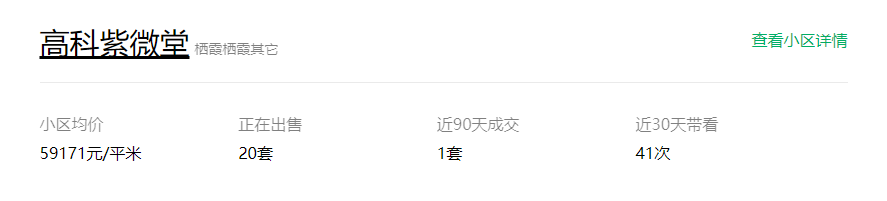 目前,在链家网,高科紫微堂的二手房挂牌价格超5.9万/㎡,整个小区有20套在对外出售。