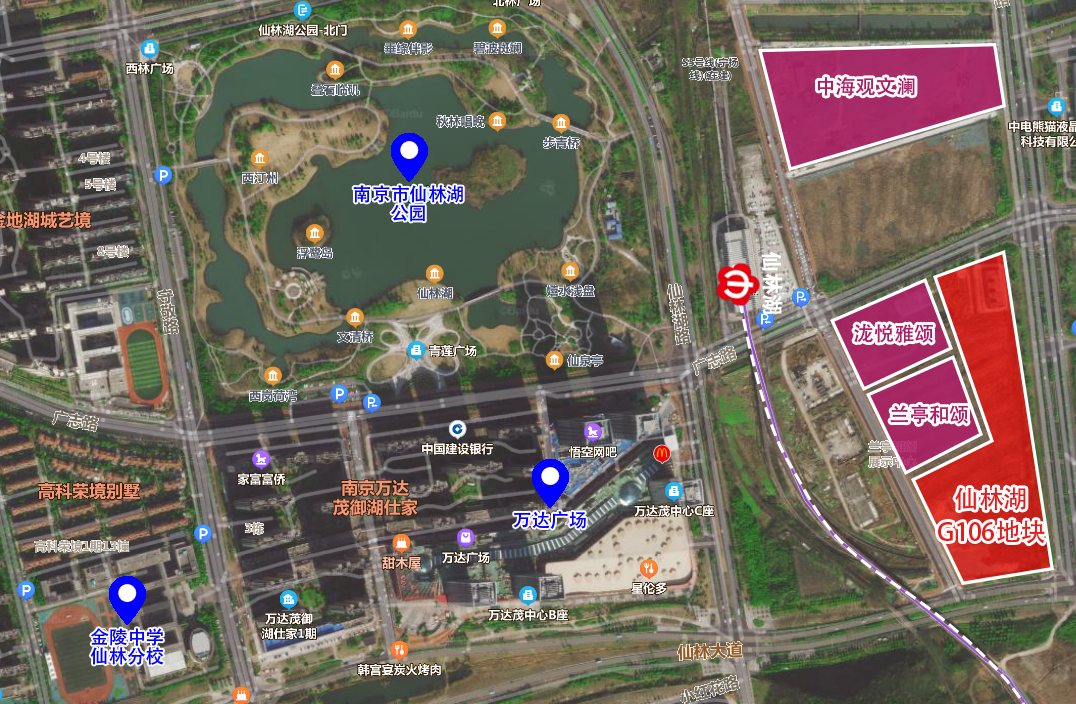 仙林湖在前几年新房还是比较稀缺的,但今年的几场土拍,仙林湖成功出让了G07、G08、G35、G38、G106五幅地块,很好的为片区新房市场做了补给;同时在售的还有中海观文澜、云樾观山府等一些老项目。其中仙林湖G106地块规划时隔大半年,刚刚于本月出了项目规划。