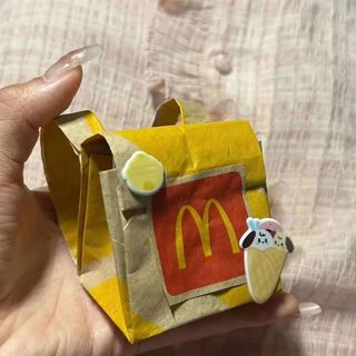 吃完麦当劳之后,她把包装纸留下做成了一只“小书包”,用来收纳一些耳环、戒指之类的小物件;喝完奶茶之后,她看包装袋精致又结实,于是她动手将它改造成了一个纸巾盒。