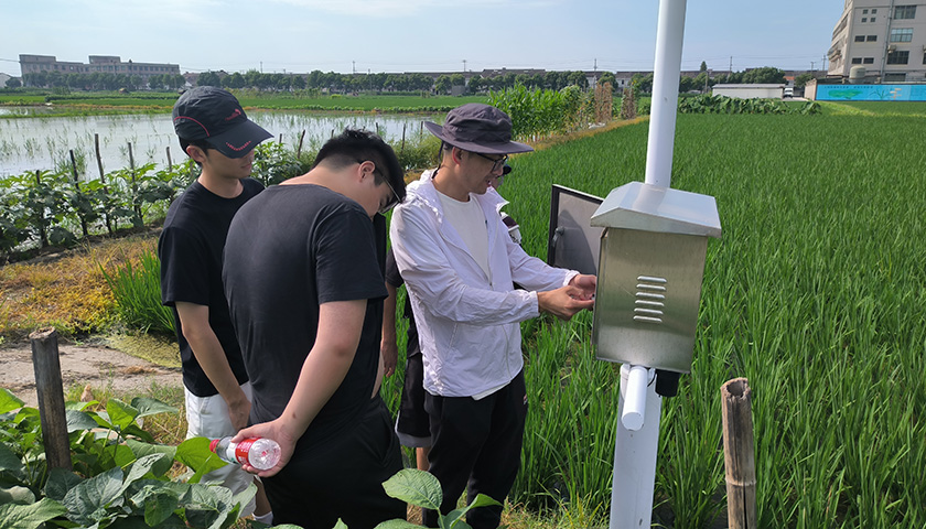 “设备调试好之后,箱子里面灰尘也拿抹布擦一擦,然后拿泡沫胶把设备粘整齐,就像是生产一个产品,在保证效率和质量的前提下,也要保证产品的美观。”指导老师张育斌副教授每天都要带着学生们深入田间,顶着三十六七度的高温,在田间挨个对流量监测设备进行维护和检修。汗水早已湿透衣衫师生们却浑然不觉,这已经是张育斌带学生下田地社会实践的第四个年头了,烈日高温早已习以为常。