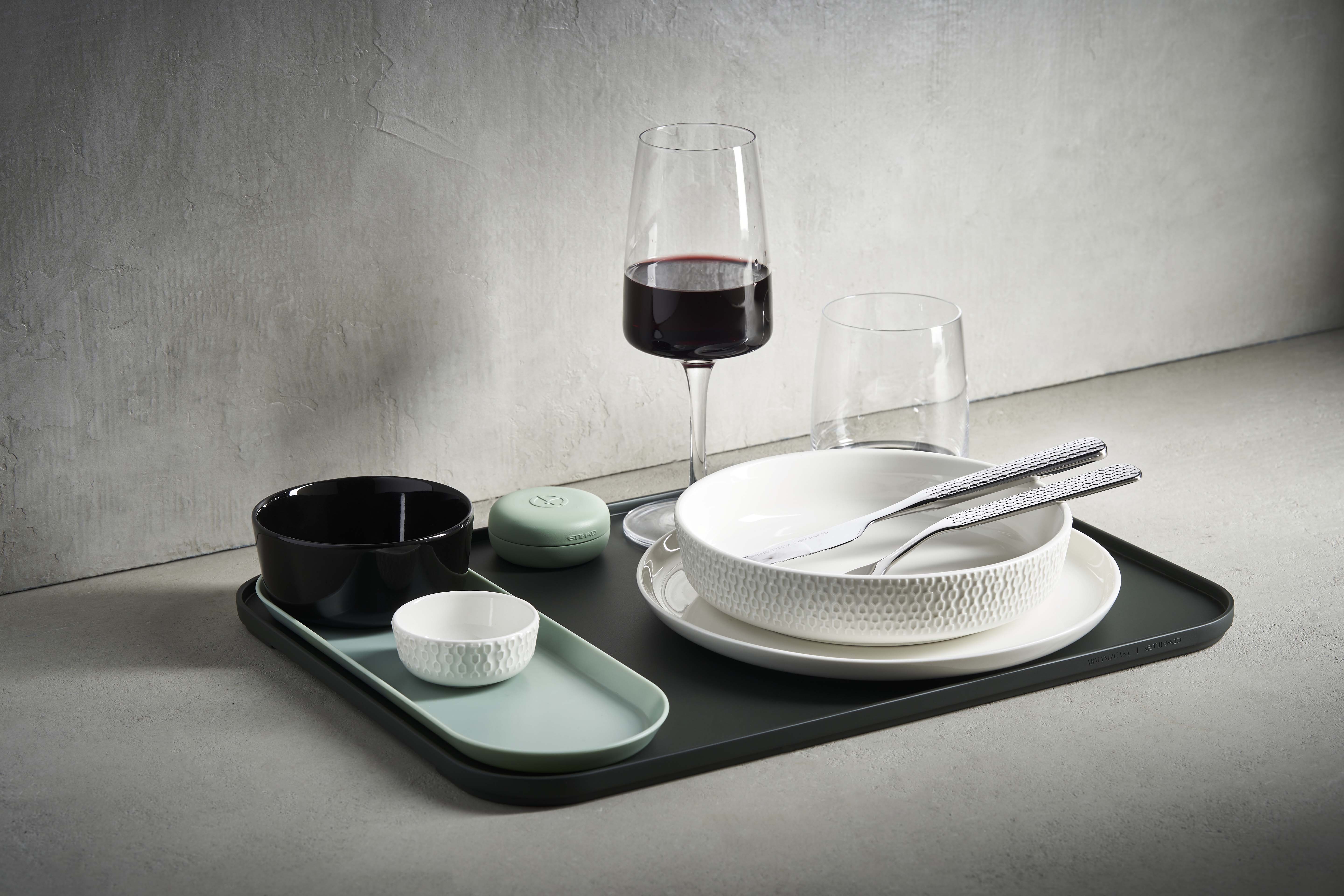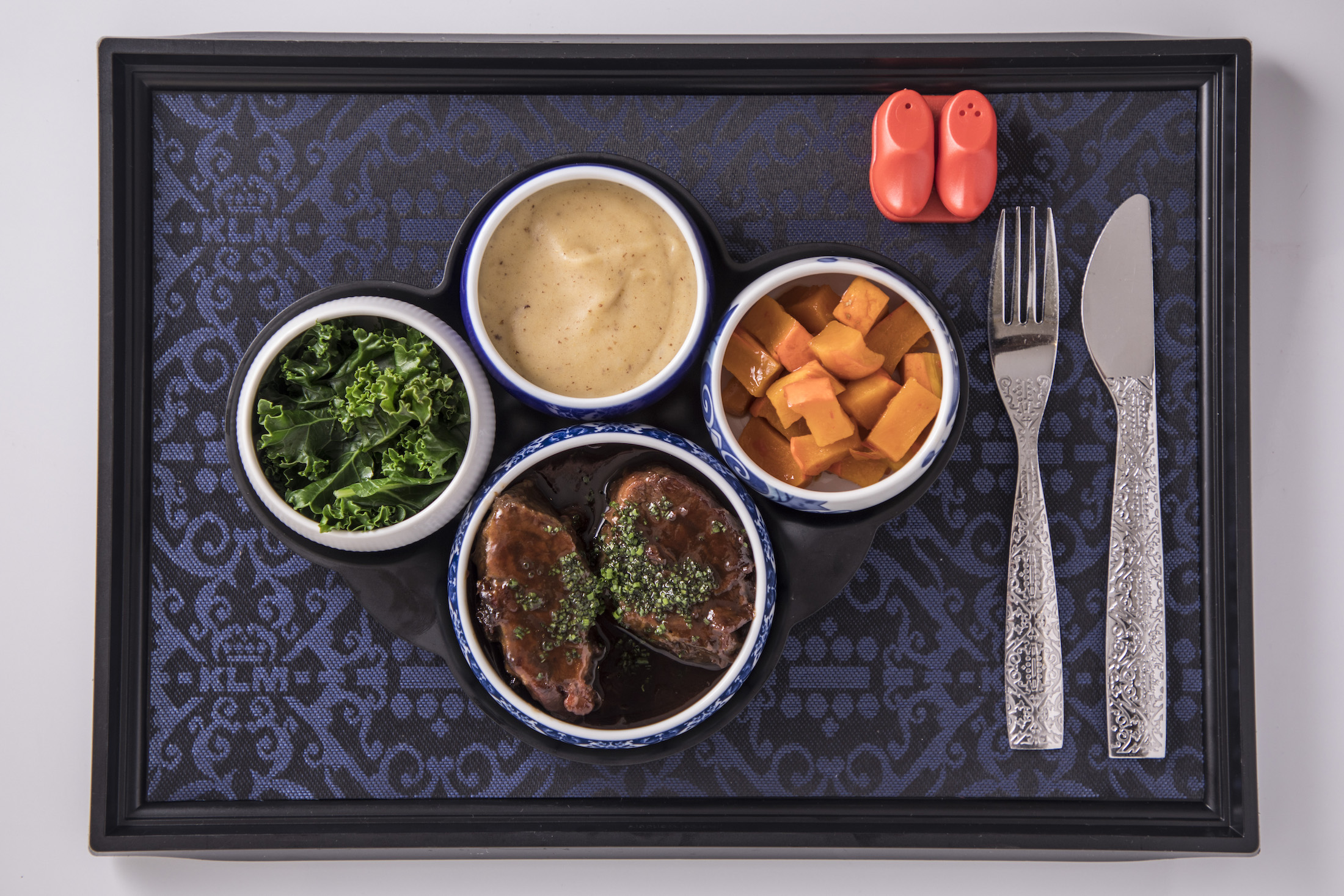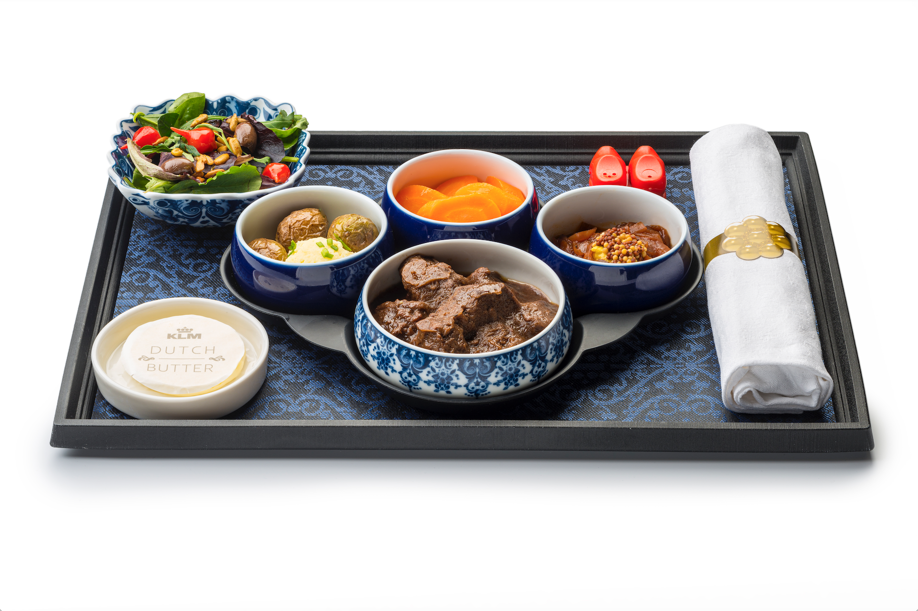 荷航环宇商务舱采用的这套独特餐具包括可持续发展的托盘和瓷器,瓷器由骨瓷制成,托盘由聚丙烯制成:质轻、更坚固、可回收的材料,均有助于实现航空公司的可持续性目标。