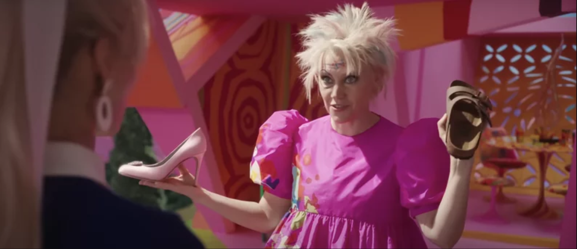 与千禧年间的小妞电影们相比,来自2023年的《芭比》的勇敢之处正在于此——芭比意识到了焦虑的存在,并毫不留情地戳破了它。我们由此不得不佩服导演格蕾塔的转喻功力:女性放弃独立自主的幻想、承认父权制并未改变的过程,正像是芭比玩偶走出盒子、进入现实荒原的过程。幻想破灭的细节是具体而微的,洗澡水是冷的,牛奶过期了,芭比再也无法轻盈地从二层房间降落到粉色汽车里,而是拖着变成平足的双脚,重重坠地。这些细节还具有另一重意味,芭比的平足被同伴们称为“故障”(malfunction),故障意味着和身处现实的某种错位,旁人未必知晓,只有自己心知肚明,而这正是女性在这个并不为她们设计的世界中的日常感受。