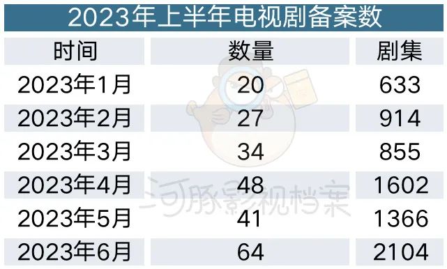根据广电总局最新发布的全国拍摄制作电视剧备案公示,2023年6月电视剧备案目共64部、2104集。