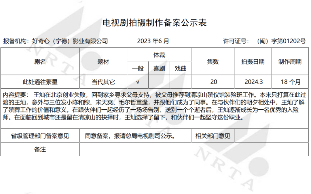 职业剧升温 《此处通往繁星》《搭伙》备案