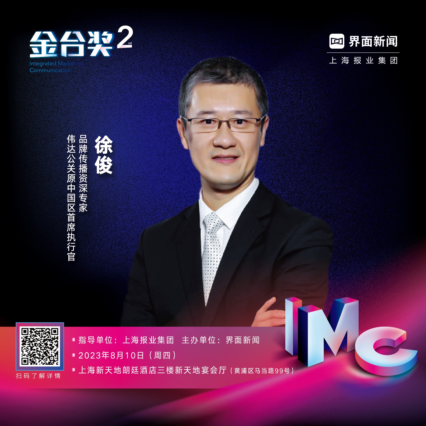 由上海报业集团指导、界面新闻主办的第六届【新消费盛典】将于8月10日于上海新天地朗廷酒店举行。品牌传播资深专家、伟达公关原中国区首席执行官徐俊确认出席第六届新消费盛典。