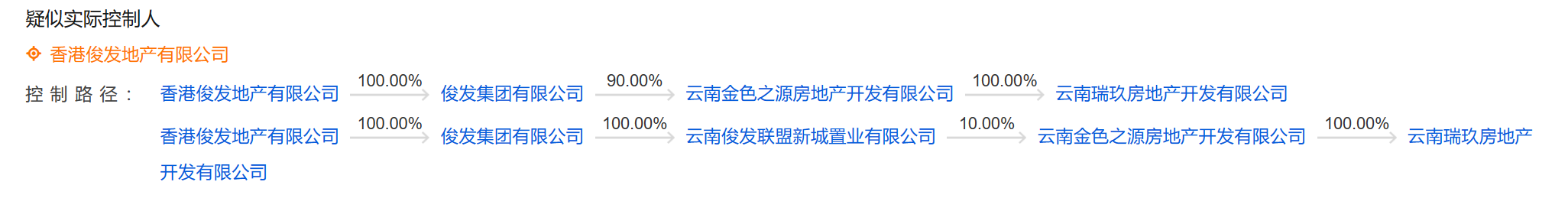 企业预警通显示,瑞玖地产实控人为云南昆明本地的房地产开放商俊发集团有限公司(下称:俊发集团)。