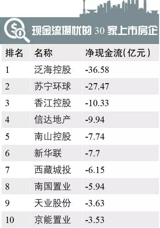 受益于宽松的货币环境,上市房企在2016年资金压力大大释放。但仍有部分房企三季度末的净现金流为负值。