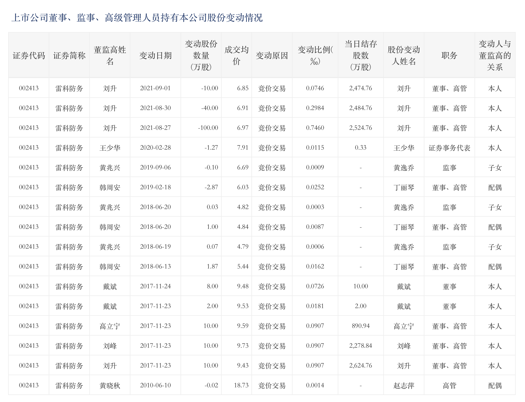 由于公告中并没有明确伍捍东的短线交易情况,故暂无更多细节。从深交所官方网站上可以看到雷科防务董监高持股变动情况,2010年6月10日至今,都未有披露过伍捍东的持股变动。