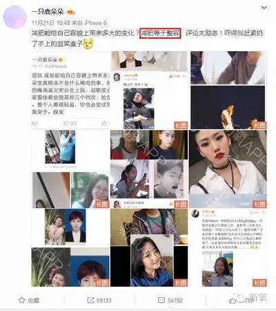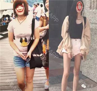 一般这样的照片都会有一个一样的标题,那就是减肥=整容!
