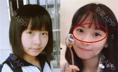 这种变化绝对不是减肥就能做到的,首先是眼睛,相比之前的小内双,这个双眼皮真的宽了很多,但是……似乎没做好,也有可能是双眼皮贴,因为实在是有点怪。