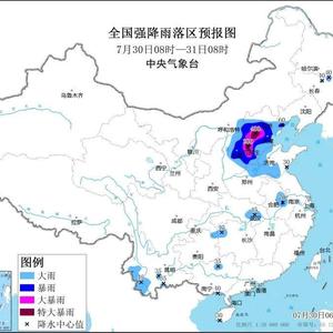 中央气象台30日6时继续发布暴雨红色预警。预计,30日8时至31日8时: