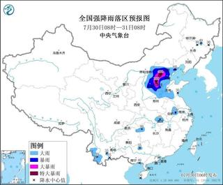 河北、北京、天津、山西中东部、河南北部、山东中西部等地有大到暴雨,其中,河北中南部、北京中南部、天津西部、山西东部等地部分地区有大暴雨,河北中部沿山地区、北京西南部等地部分地区特大暴雨;