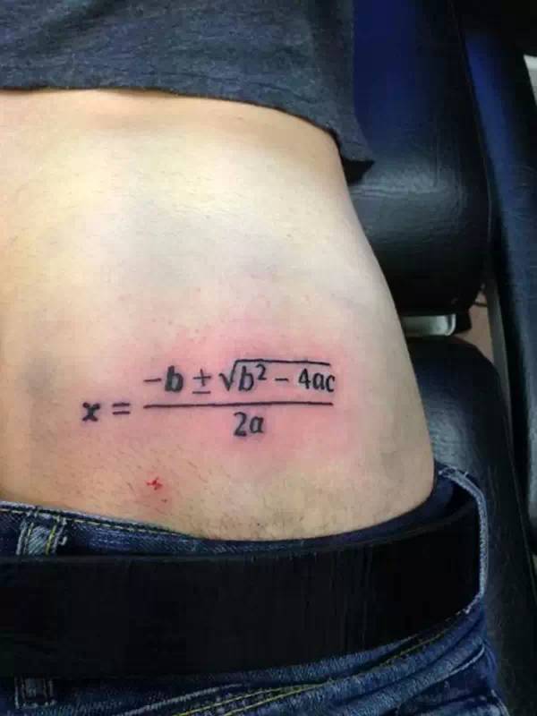 英国学生 Rory Kirkman 在数学考试两次失败后,把可恨的二次方程求根公式纹在了身上。