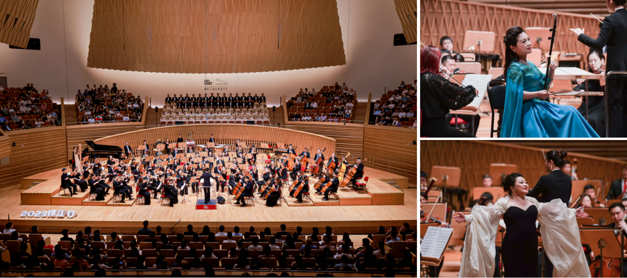 该场音乐会由上海交响乐团著名指挥家张洁敏执棒,国家一级演员、上海民族乐团二胡首席演奏家段皑皑,有“东方夜莺”之称的旅美女高音歌唱家黄英等著名艺术家轮流登台,在千人会场内汇成交融文旅、艺术的绕梁之音,奏响联接美好城市生活的崭新旋律。