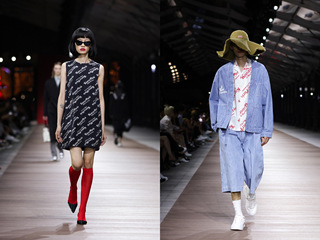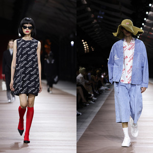 该系列包括解构风格精剪服饰和经典单品,比如运动套装、牛仔夹克、皮外套、西装和牛仔裤,通过倒置设计和对折手法改造而成,进一步体现了品牌颇具实验性的混搭风格。褶裥上衣和半裙、蕾丝晚礼服、珠饰刺绣长裙、贴身运动服和人造貂皮大衣,搭配收腰设计和圆润的肩部线条,呈现全高定廓形。