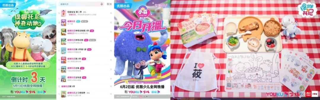 《缇娜托尼神奇动物》于5月开播,“缇娜托尼”是优酷少儿联合俄罗斯知名动画制作公司瑞奇集团联合打造的动画IP,已发行到全球30+海外国家或地区,深受学龄前群体喜爱。除了相继推出众多作品,缇娜托尼在商业化方面也取得不俗成绩,譬如IP曾和伊利新食机、力诚食品等进行合作,开发一系列儿童健康食品,今年五一期间,其和西贝莜面村的联动、跨界,也成功为品牌方吸引到不少人流,带动产品销售和自身影响力拓展。