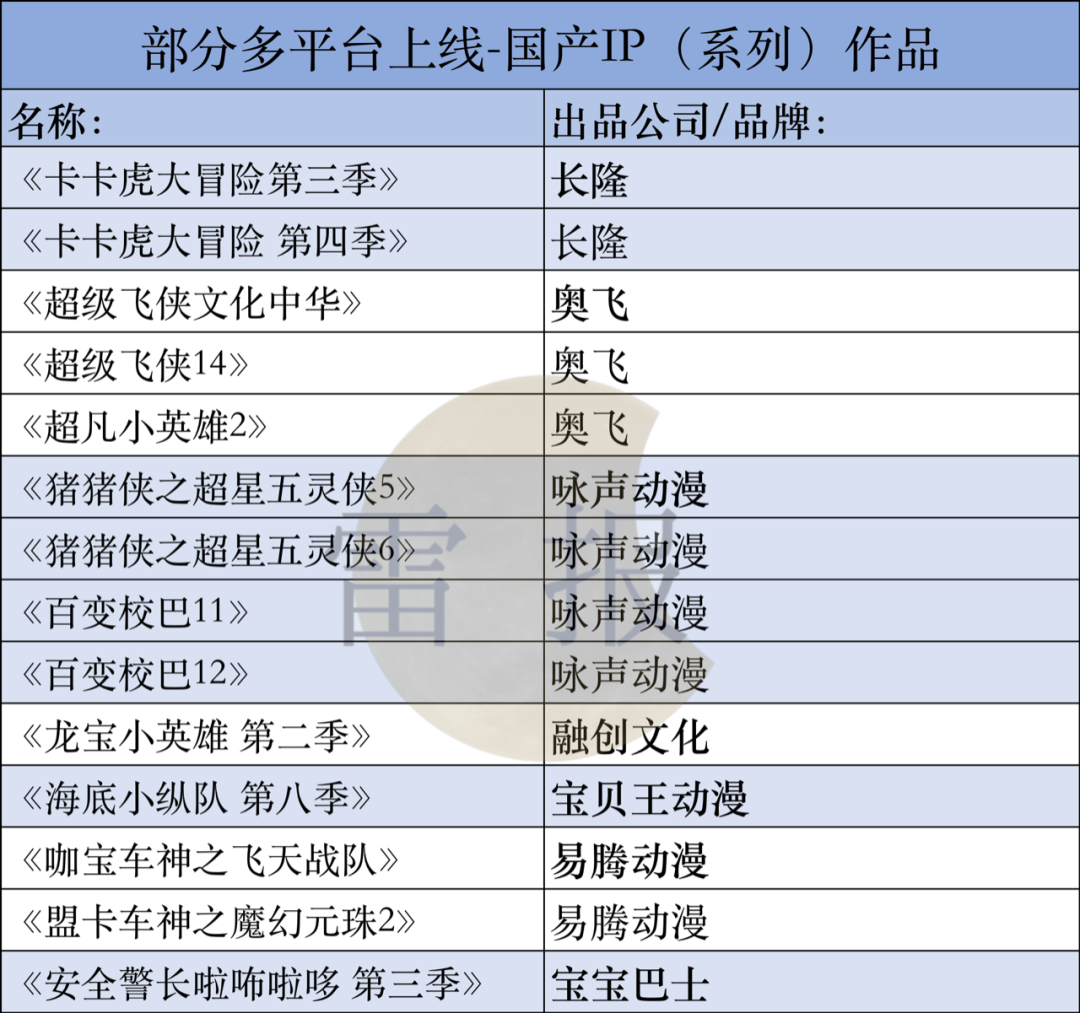 从中一定程度上可以看出国产少儿IP依旧在稳步推进作品的供给,同时部分公司/IP有节奏快的特点,持续满足粉丝、用户的内容需求。