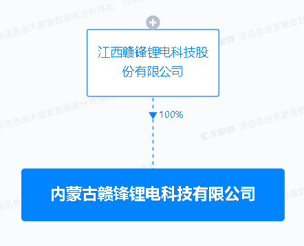 天眼查APP显示,近日,内蒙古赣锋锂电科技有限公司成立,注册资本1亿元,经营范围包含:电池制造、储能技术服务、新材料技术研发、工程和技术研究和试验发展等。天眼查股权穿透显示,该公司由赣锋锂业旗下江西赣锋锂电科技股份有限公司全资持股。