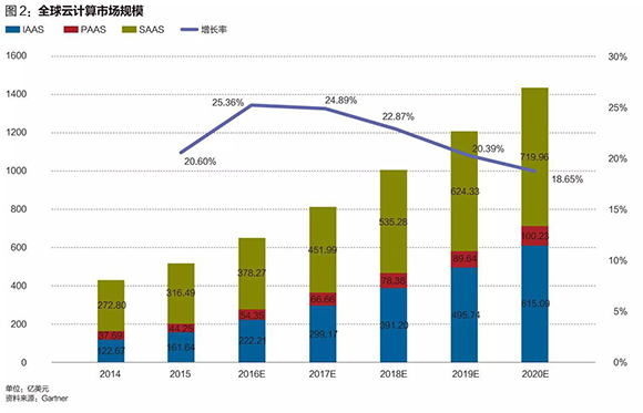 市场研究公司Gartner报告称,全球公共云服务市场规模今年有望达到2040亿美元,每年的增长率接近20%。另一家研究公司Market Research的预测数据显示,2020年全球云服务市场规模将超过2700亿美元。