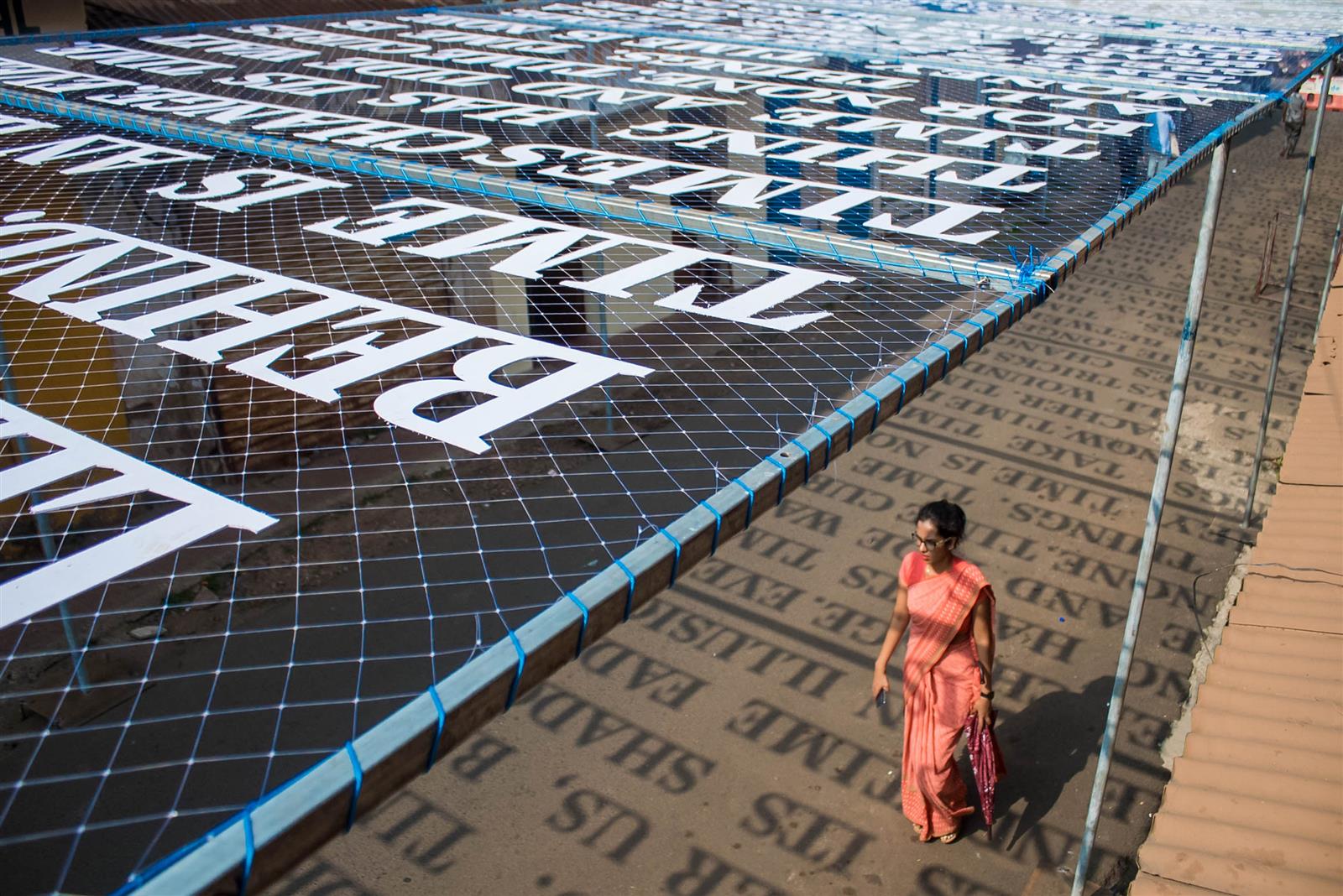 印度街头艺术家Daku的《时间的理论》,是根据澳门在地文化创作的装置作品,透过光影和文字意象的重迭,启发观众思考时间的本质;