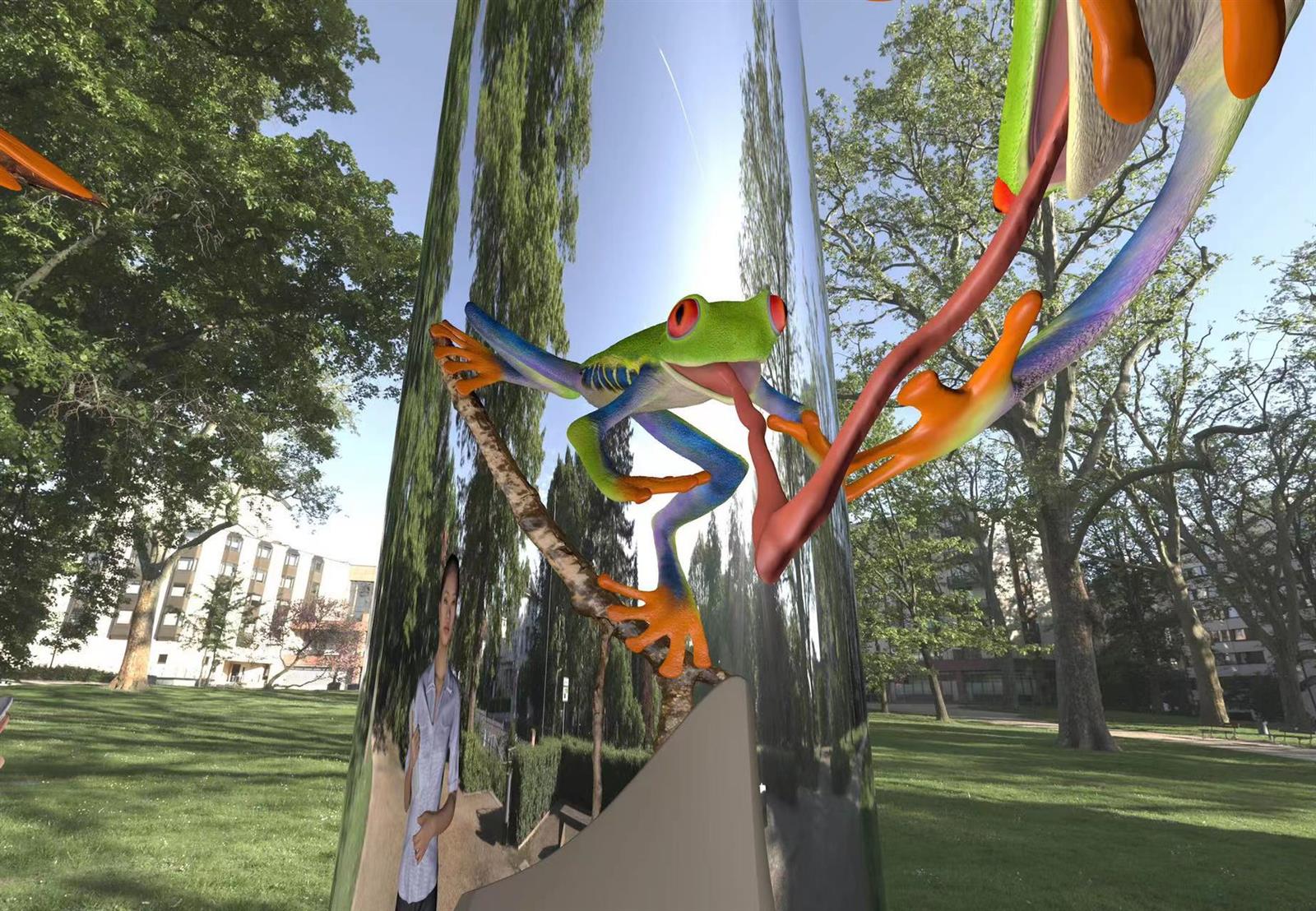 由南非的Jonty Hurwitz和以色列的Yifat Davidoff共同创作的静态雕塑《炼金术的飞跃》,运用光学变形原理创作,意趣盎然;