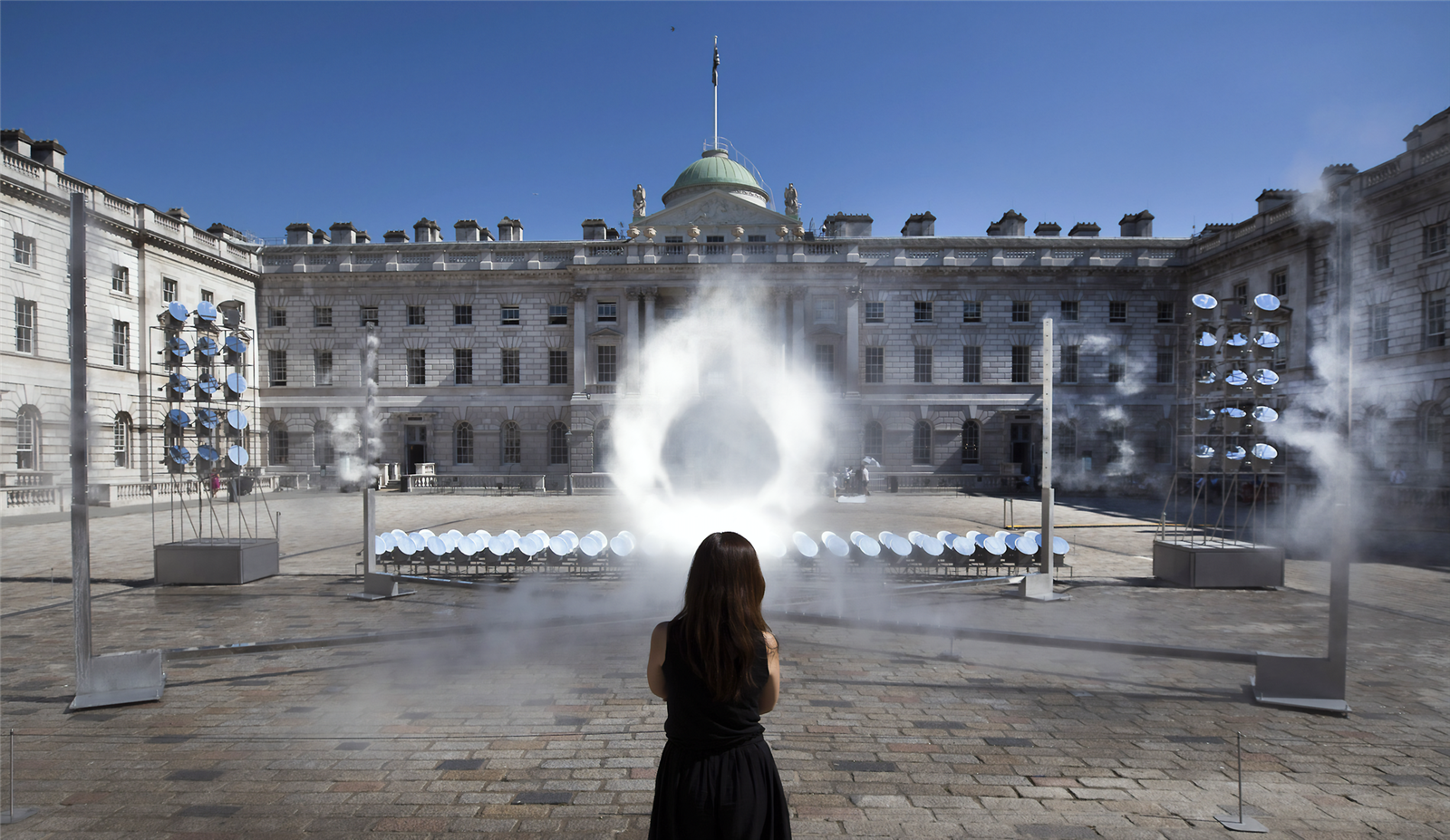 由韩国和英国艺术家(Mimi Son、 Elliot Woods)组成的艺术团体Kimchi and Chips创作的《光环》,透过程式控制,以水雾和自然光营造富有宗教意味的动态光环,是融合科技元素与信仰符号的创意作品;