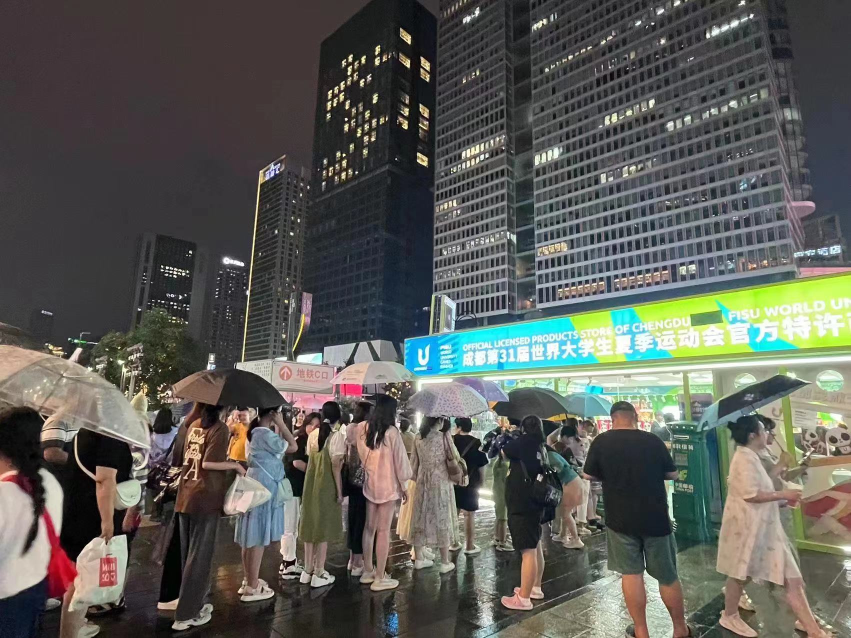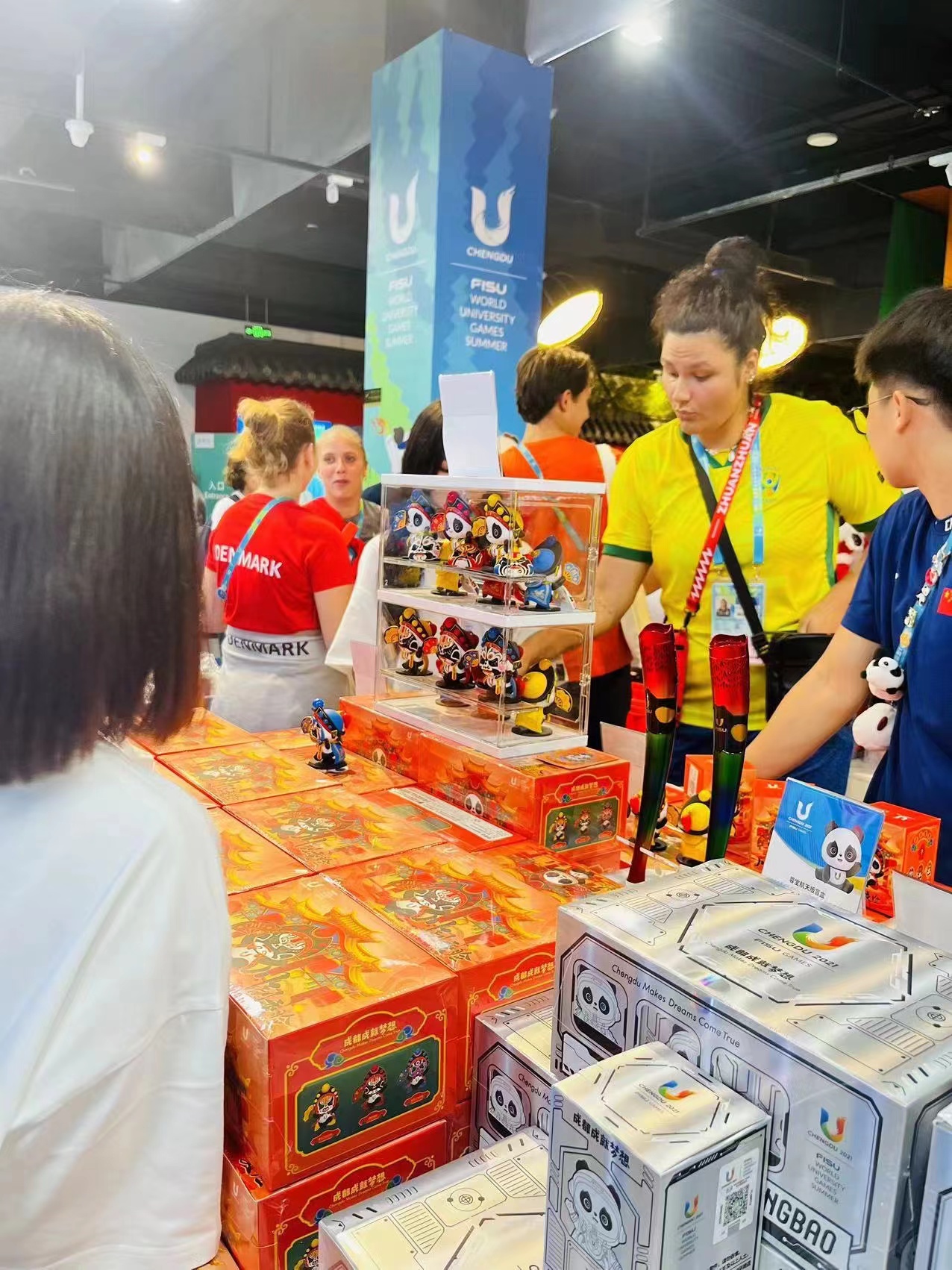 这几日,位于成都市春熙路的大运会特许商店前,顾客络绎不绝。