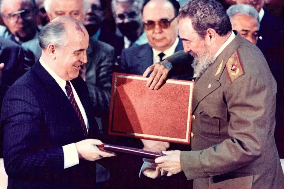 1989 卡斯特罗与苏联领导人戈尔巴乔夫签订协议