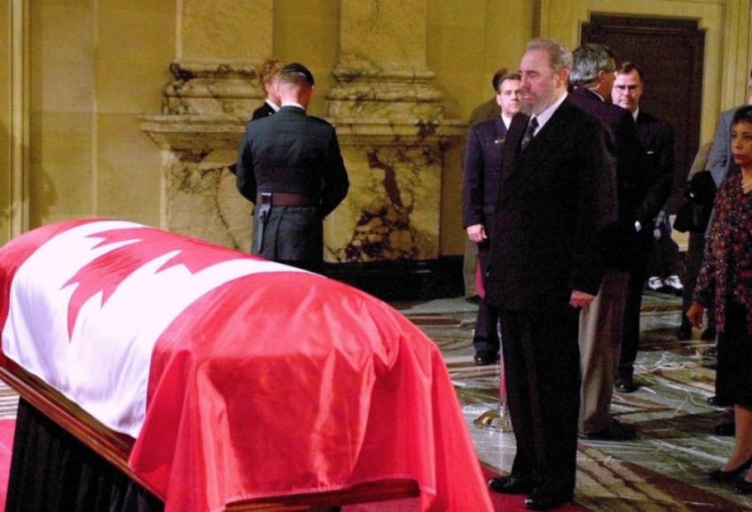 2000 卡斯特罗在蒙特利尔参加加拿大总理皮埃尔·特鲁多的葬礼