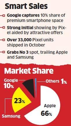 据美国科技新闻网站AppleInsider报道,市场研究公司Counterpoint发布的最新数据显示,在印度高端手机市场,三星电子的份额已经缩小到了23%,苹果的份额提高到了三分之二,谷歌依靠Pixel等新手机获得了10%的份额,其他厂商在高端机的份额仅为1%。
