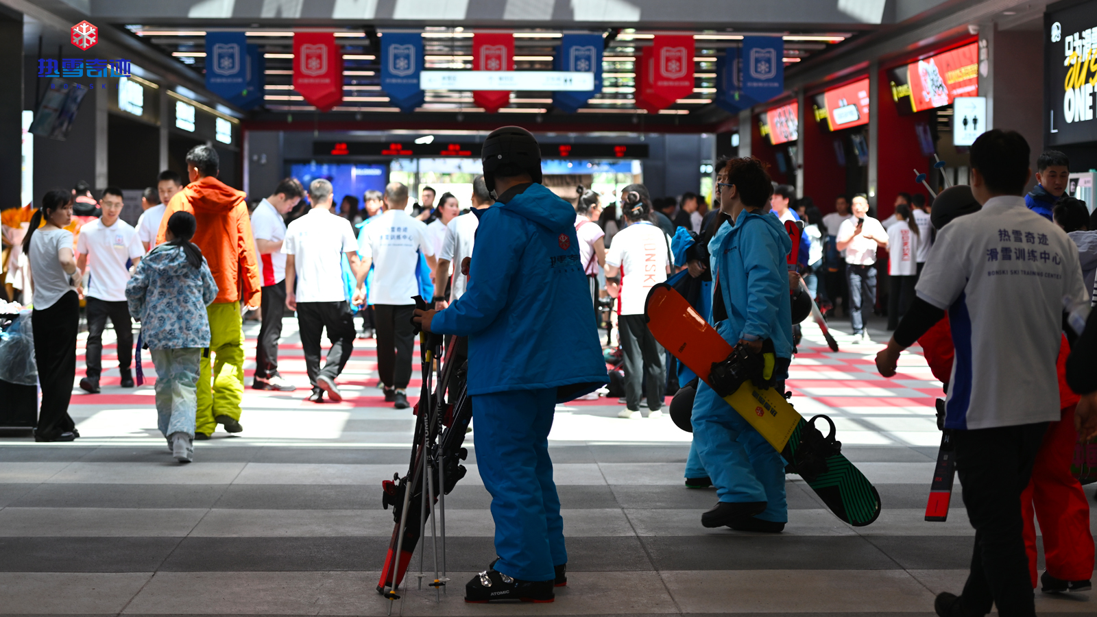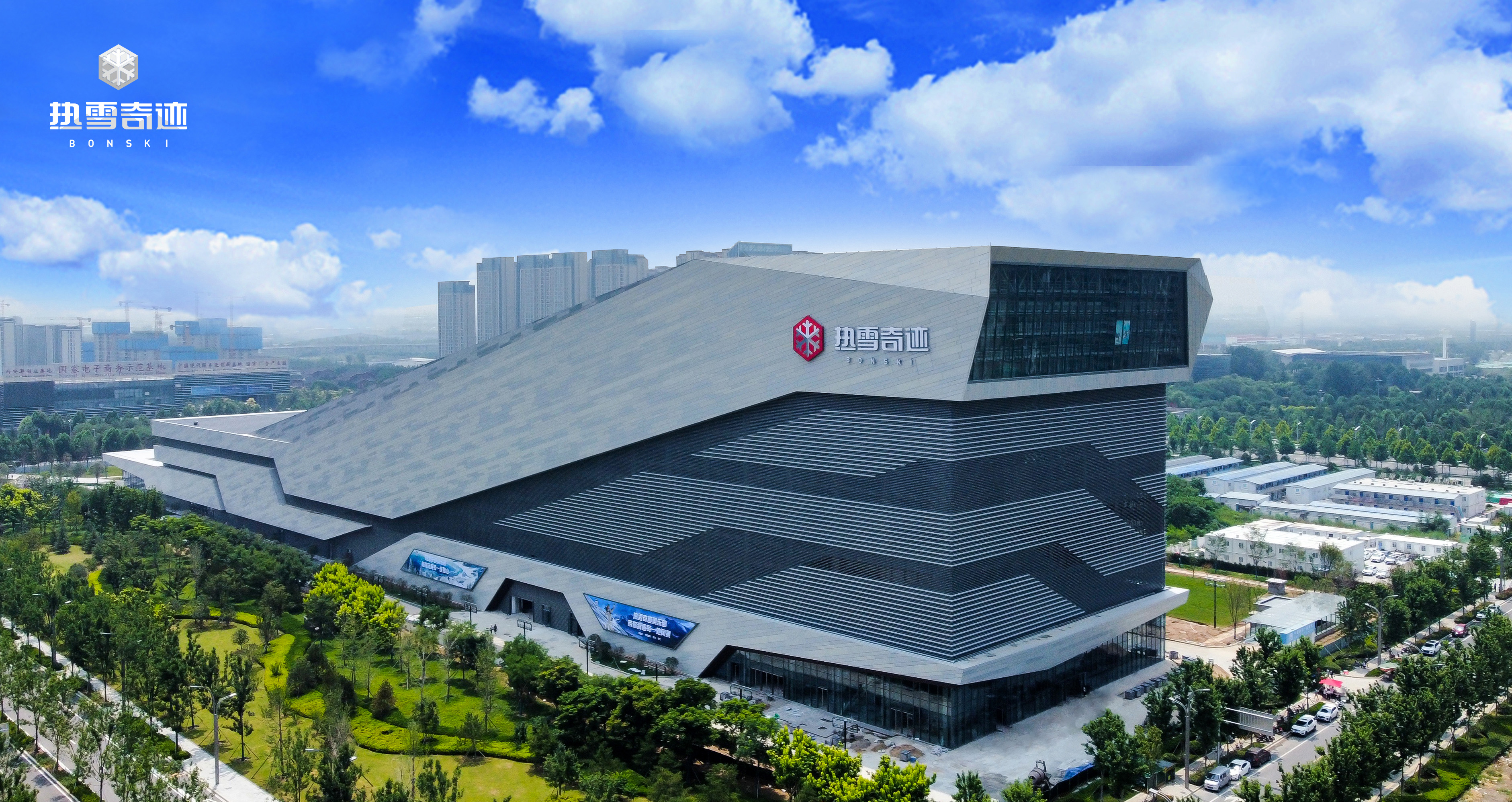 由龙翔控股集团、融创西北区域投资的西安热雪奇迹总建筑面积4.99万平方米,涵盖雪场、零售、餐饮等多种业态。其中,雪场冷区设有初、中级雪道,以及魔毯、吊椅缆车等设备,还有汇集箱式(box)、杆式(rail)、跳台(jump)、蘑菇(mogul)等道具的专业滑雪公园。无论是初学者还是进阶玩家,都能在此获得提升。在暖区,雪景主题餐厅、雪具装备等多功能商业配套,可满足一站式滑雪休闲娱乐的需求。此外,该项目还是首个符合BRE英国建筑研究院“BREEAM for Bonski”可持续建筑标准的室内滑雪场。