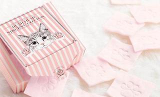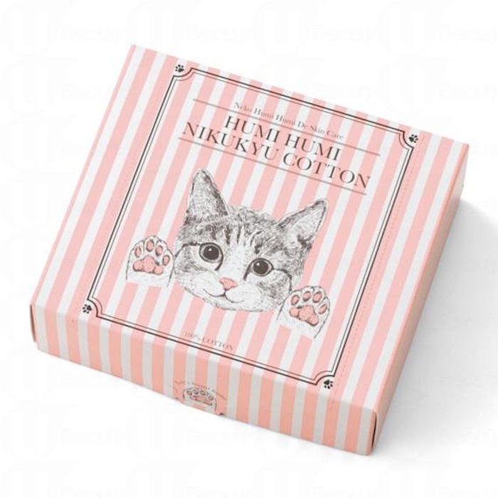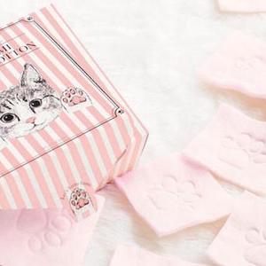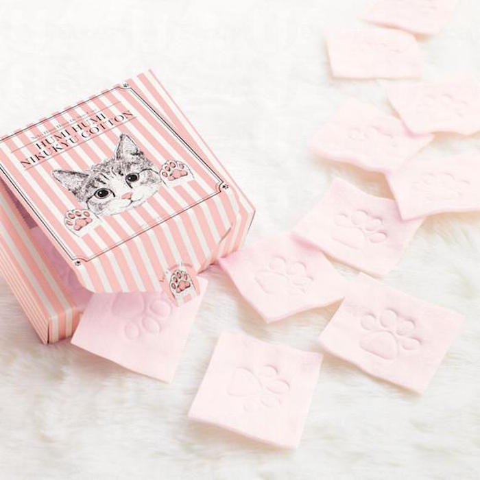 近日猫部推出一款化妆棉产品。打开印有小猫模样的盒子,里面粉色化妆棉上印有可爱的猫爪。