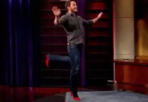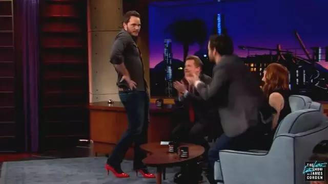 《侏罗纪世界》主创上节目宣传时,主持人还让男主角克里斯·普拉特穿上了高跟鞋