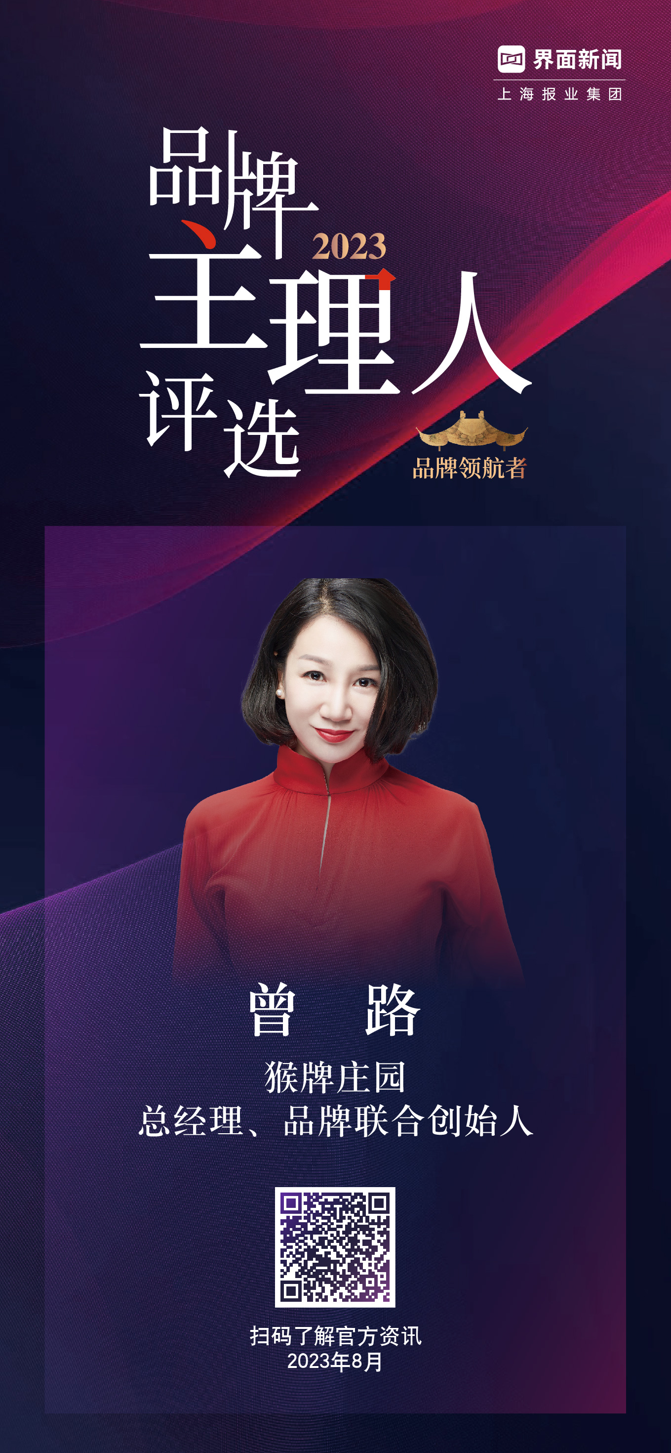 猴牌庄园总经理、品牌联合创始人曾路女士带领公司打造以茶为链接的高端文化生活场景与消费模式,开创了新型的品牌合作模式,为茶品牌提供更多消费与落地场景,从而荣获2023年度品牌主理人荣誉宝座。
