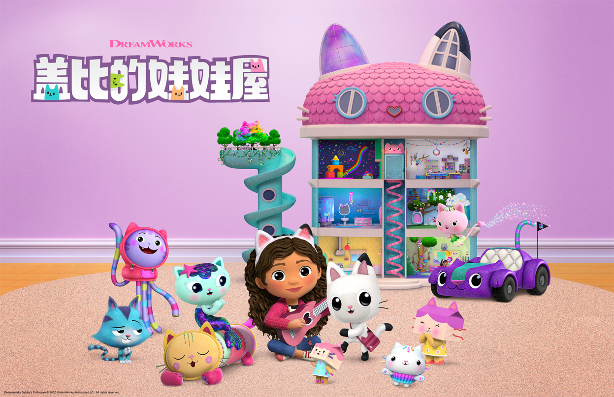 自从梦工场动画的热门剧集《盖比的娃娃屋》首播以来,全世界的孩子们都与新朋友盖比和她的猫咪朋友们一起享受着大型洒糖派对带来的乐趣。这部综合媒体学龄前儿童系列内容由著名的故事讲述者Traci Paige Johnson和Jennifer Twomey创作并执行制作。每一集都会拆开一个惊喜,让孩子们共同探索一个奇幻的动画世界,那里住着《盖比的娃娃屋》里可爱的猫咪角色们。基于儿童成长心态,该剧集鼓励孩子们培养灵活思维的能力,并能从错误中学习。《盖比的娃娃屋》现已成为学龄前儿童内容领域中增长最快的品牌之一,剧集在89个国家和地区的儿童节目中排名前十,并成功激发了一系列获奖的玩具、出版、家居、服装等产品的出现,以及原创音乐、评分最高的应用程序和每周吸引数百万粉丝且不断增长的YouTube频道。此外,《盖比的娃娃屋》将持续为全球粉丝们提供丰富体验,包括与环球主题乐园的联动、现场活动等等。来《盖比的娃娃屋》玩耍,感受冒险的乐趣。