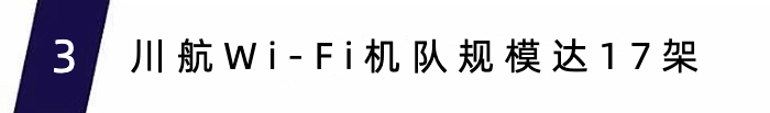 截至7月底,川航Wi-Fi空地互联机队已达到17架,成为行业首家实现批量化Wi-Fi飞机执飞固定航线的航司。同时,川航试点打造Wi-Fi精品航班,以“Hi!上网啦”为主题进行客舱氛围布置,并分机型投放了基础流量产品、会员里程兑换、机上上网码、航班Wi-Fi标识展示、Wi-Fi航班查询五类对客服务产品。预计2023年底,川航Wi-Fi机队规模将超过20架。