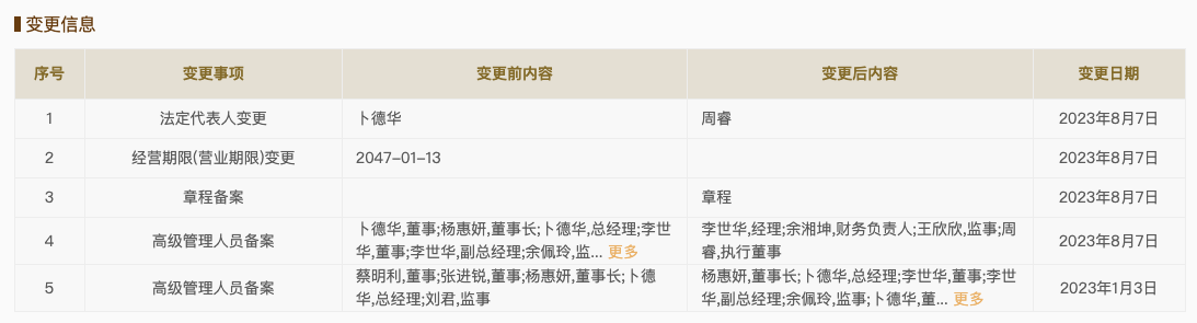 国家企业信用信息公示系统网站显示,8月7日,佛山市高明区碧桂园房地产开发有限公司发生工商变更,杨惠妍卸任董事长,卜德华卸任法定代表人、总经理、董事,新增周睿为法定代表人、执行董事。该公司成立于2004年1月,注册资本约11.63亿人民币,经营范围含房地产开发、商品房销售,由恒宙国际有限公司全资控股。