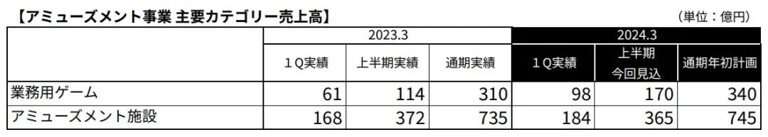 游艺业务单元部分,据财报显示,2023年Q2销售额为282.4亿日元,比去年同期增加了22.7%,部门利润为31.6亿日元,比去年同期增加了49.4%。