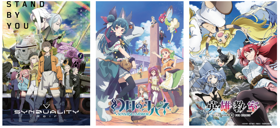 IP制作业务方面,本季度推出了3部电视动画作品,按照下图从左到右依次为:万代南梦宫原创科幻动画作品《SYNDUALITY Noir》、《Love Live! Sunshine!!》的官方衍生作品《幻日的夜羽-SUNSHINE in the MIRROR-》,还有原作漫画系列累计发行超160万册的学园战斗奇幻动画作品《英雄教室》。