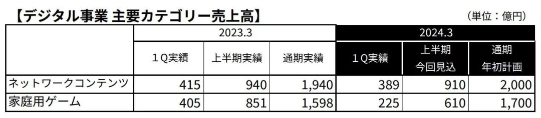 财报说明会后发布的提问应答概要中提到,本期出现利润额下降超过销售额的主要原因在于,数字业务中主机游戏的高利润率产品销售数量减少了。具体来说,与去年同期相比,下载率较高的《艾尔登法环》等游戏销售数量有所下降。