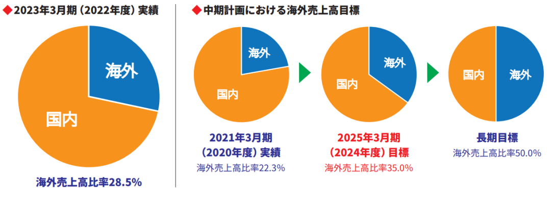 今年是万代南梦宫中期计划的第二年,为实现其核心目标“IP轴战略”,万代南梦宫后续将跨地区、跨项目地推进IP开发项目,并在世界范围内加强影像作品同商品及服务的合作,最终在中期计划末(2024年度)实现海外业务销售额占比35%的目标(2022年度是28.5%),远期计划则期待海外与日本国内业务销售额各占50%。
