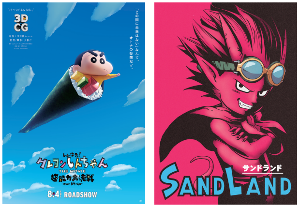 电影方面,系列中首次用3DCG制作的《新次元!蜡笔小新THE MOVIE 超能力大决战 ~飞翔吧手卷寿司》将于8月4日上映,另外在《周刊少年Jump》杂志上强力连载的鸟山明原作的《沙漠大冒险》也将于8月18日上映。