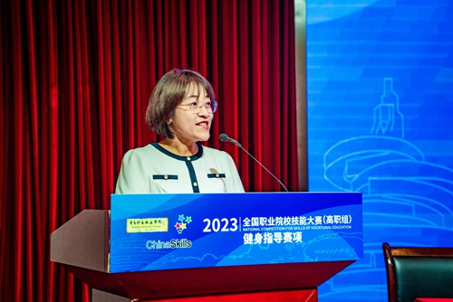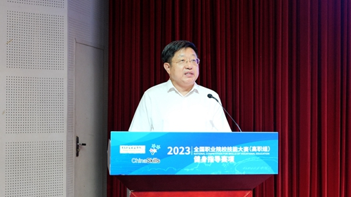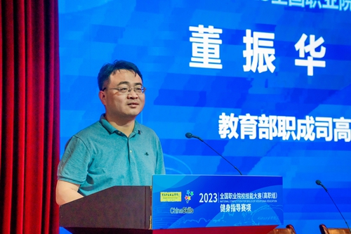 董振华宣布2023年全国职业院校技能大赛高职组“健身指导”赛项开赛。