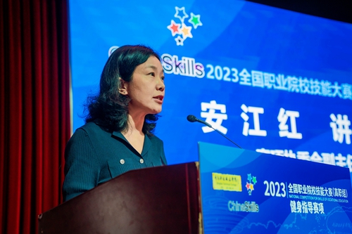 安江红指出,全国职业院校技能大赛赛事历史上首次设置高职组“健身指导”赛项,是落实健康中国战略的重要举措,是宣传科学健身、主动健康理念的重要平台,不仅为后续同类赛事的专业化、规范化、标准化提供大量经验,也将吸引更多专家、学者和学生参与到“健康关口前移”的历史责任中。她号召参赛各方进一步坚定信念、主动担当,积极实践,力争在健身指导赛项首届赛事中实现竞赛组织、服务保障、备赛参赛的“三个一流”,打造全国健身指导示范样板。